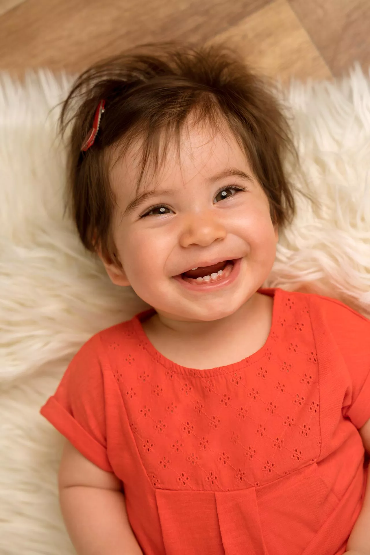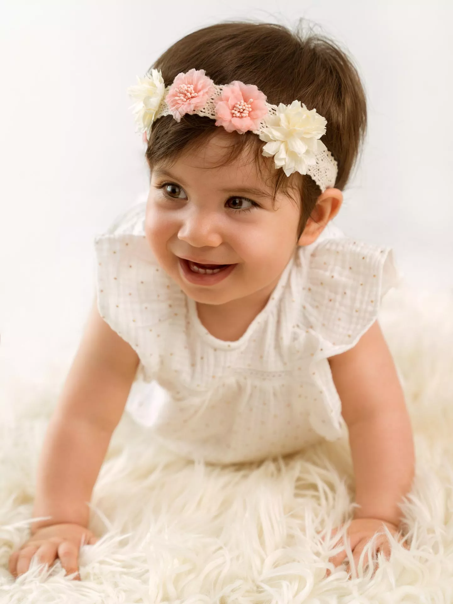 Entre 6 et 12 mois, c'est le stade de développement ou votre bébé peut se tenir assis. A cet age, il a plein d'expressions différentes que nous pourrons prendre en photo grâce à votre complicité.